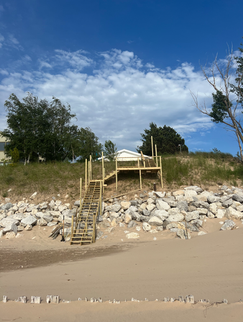 Thursday evening we drove over to Silver Lake and Lake Michigan to see the dunes and beach. Come to find out, we were only about 2 miles from the house that my family used to hang out. I found out where it was located from Scott and we headed out to try and find it. It wasn’t hard to find. Only the 2nd house north from the beautiful lighthouse right on Lake Michigan Beach. We walked around the beach and took some photos. I could just imagine my parents hanging out at that beach when they were younger without a care in the world. I got emotional imagining my mom there carefree, before life got complicated. But I did find some comfort in that, I guess, and felt her near me. After the beach, we found the Chicken Shack where they had live music and a nice outdoor seating area. We had dinner, listened to the music then headed back to our site. We were off to the east side of Michigan the next day.