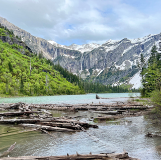 We arrived to West Glacier on Wednesday afternoon. We stayed at West Glacier RV Park right outside the park gate. It was very convenient and was really nice with spacious sites, nice amenities and beautiful mountain views. We were excited to check out the park, so we headed in Wednesday evening right after we got settled. The Going to the Sun road, which is the main road in Glacier, was only open 16 miles of the 50 mile road. This was due to the amount snow, ice and avalanche risk along the remainder of the road. They were still working on clearing the roads, which we found out is pretty late in the season from previous years. This park also requires a reservation to enter the park from 8am-4pm. ( random tip- all the national park have different rules and setups with reservations now. Some require them, some don't. Some you have to reserve weeks in advance, some the day before. It's a little confusing, so, make sure to check the nps.gov site for those details if you are planning a trip. ) One of the things I was most excited to see on this trip was Lake McDonald, and fortunately that was before the road closure. It did not disappoint. 😍 We made a few stops to walk down to the lake, drove through until the road was closed and stopped at different view points along the way. Glacier was off to a great start.